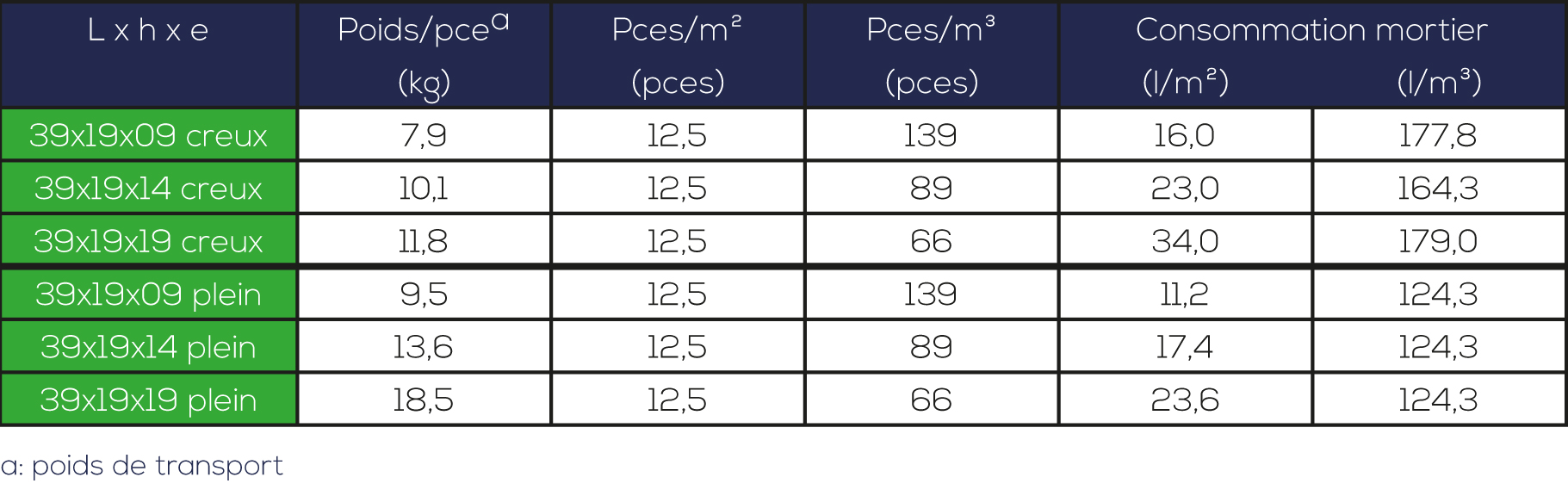 - Classification en groupe pour la maçonnerie portante calculée selon PTV 21-001 : groupes 1 et 2.