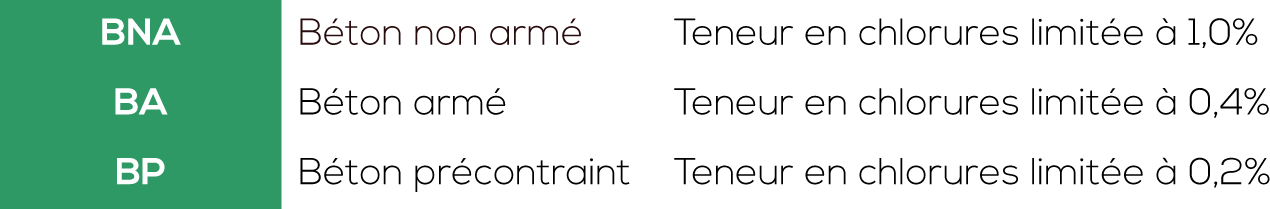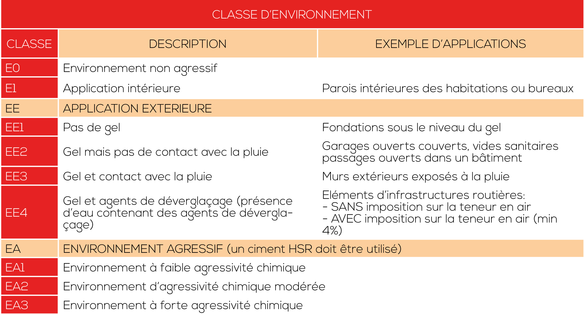 Indiquez si le béton est non armé, armé ou précontraint. Le domaine d’utilisation et la classe d’environnement déterminent les exigences de durabilité auxquelles le béton doit satisfaire.
