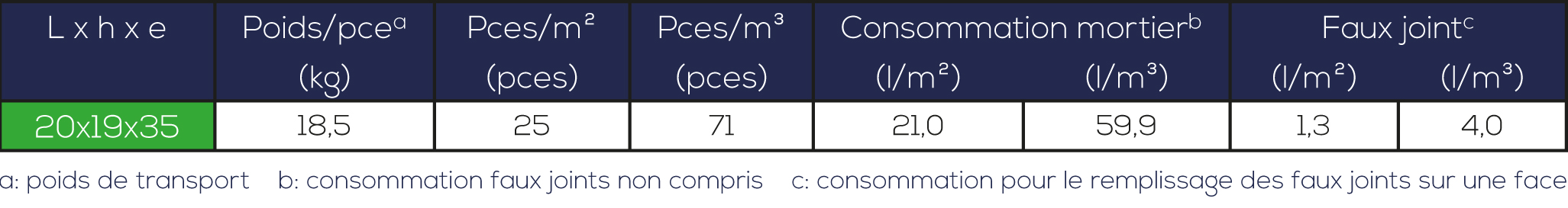 • Classification en groupe pour la maçonnerie portante calculée selon PTV 21-001 : groupes 4.